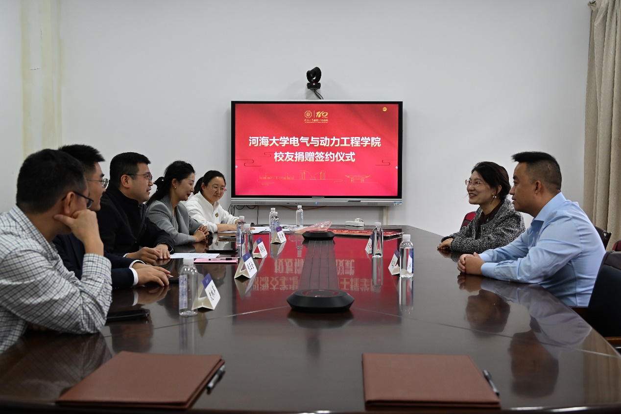 10月25日,我们举行捐赠签约仪式。江苏智格高科技有限公司、南京丰道电力科技有限公司、绿迹(南京)能源科技有限公司等为支持学校、学院事业发展,注资“电力基金”、“动力基金”并捐赠仪器设备。江苏智格高科技有限公司总经理、党支部书记徐立忠,绿迹(南京)能源科技有限公司总经理郑笃谦,学院96级电力系统及其自动化专业校友、南京丰道电力科技有限公司总经理於涛,365(VIP)英国上市官网国内合作发展处副处长、教育基金会办公室副主任、校友会办公室副主任李维、学院班子成员、教师代表、校友代表等参加签约仪式。仪式由学院党委书记吴洪彪主持。